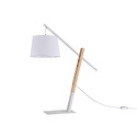 Настольная лампа декоративная стиля модерн для гостиной, кабинета или спальни имеет размеры 230x800 мм. Арматура светильника окрашена в белый цвет. Лампы в комплекте - отсутствуют. В светильнике применяются лампы накаливания или светодиодная LED-лампа. Цвет плафонов - белый, с матовой поверхностью. Материал плафонов - текстиль. Класс электробезопасности - II, степень пылевлагозащиты (IP) - 20. Максимальная мощность лампы (Вт) - 60. Светильник размещается на столе.