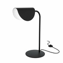 Настольная лампа декоративная стиля техно для гостиной, кабинета или спальни имеет размеры 95х305х430 мм. Арматура светильника окрашена в черный цвет. Лампы в комплекте - отсутствуют. В светильнике применяются галогеновая лампа или светодиодная LED-лампа. Цвет плафонов - белый, черный, с матовой поверхностью. Материал плафонов - акрил, металл. Класс электробезопасности - II, степень пылевлагозащиты (IP) - 20. Максимальная мощность лампы (Вт) - 28. Светильник размещается на столе.