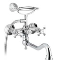 Назначение: универсальный • Конструкция: с раздельными клапанами • Монтаж: вертикальный • Материал: покрытие - бронза • Монтажные отверстия: 2 отверстия • Форма излива: традиционная • Душевая лейка в комплекте: есть • Держатель для душевой лейки: на смесителе • Донный клапан в комплекте: есть