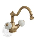 Назначение: для биде • Конструкция: двухрычажный • Монтаж: горизонтальный • Клапан: керамический • Материал: латунь, покрытие - бронза • Подводка: гибкая • Монтажные отверстия: 1 отверстие • Форма излива: традиционная • Душевая лейка в комплекте: нет • Аэратор: есть • Донный клапан в комплекте: есть