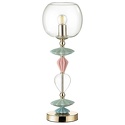 Настольная лампа декоративная стиля модерн для гостиной, кабинета или спальни имеет размеры 178x517 мм. Арматура светильника окрашена в золотой цвет. Лампы в комплекте - отсутствуют. В светильнике применяются лампы накаливания или светодиодная LED-лампа. Цвет плафонов - неокрашенный, с прозрачной поверхностью. Материал плафонов - стекло. Класс электробезопасности - II, степень пылевлагозащиты (IP) - 20. Максимальная мощность лампы (Вт) - 40. Светильник размещается на столе.