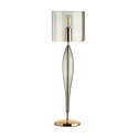 Настольная лампа декоративная стиля модерн для гостиной, кабинета или спальни имеет размеры 230x740 мм. Арматура светильника окрашена в золотой цвет. Лампы в комплекте - отсутствуют. В светильнике применяются лампы накаливания или светодиодная LED-лампа. Цвет плафонов - дымчатый, с матовой поверхностью. Материал плафонов - стекло. Класс электробезопасности - II, степень пылевлагозащиты (IP) - 20. Максимальная мощность лампы (Вт) - 60. Светильник размещается на столе.