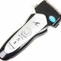 Моя первая электробритва. До этого 15 лет брился только станками. Решил попробовать другой вариант бритья, и в целом не жалею. Если Вы раздумываете, покупать или нет такую бритву, учтите вот что: 1. Сухое бритьё тут на троечку. Остаётся ощутимая рукой щетина, причем не только под подбородком и на шее, но и на лице. По сухому лицу бритва скользит плохо, кожа собирается в складки, и, соответственно, не пробривается. 2. Влажное бритье с гелем для бритья - на четверку. Оно ощутимо чище, чем сухое, лицо гладкое как после станка, но на шее и под подбородком все же можно ощутить колючие места. Кроме того, для приличного результата придется приноровиться. Водить электробритвой надо раза в три медленнее, чем станком. Вообще чем медленнее, тем лучше результат. И водить придется не в одном направлении, а в нескольких по одному и тому же месту, иначе тоже всё не пробреет. После влажного бритья бритва требует промывки, сушки и смазки. Иначе быстро сетка и лезвия придут в негодность. В итоге время бритья раза в три дольше, чем станком. С другой стороны, ощущения при таком бритье приятные. Раздражение было пару дней поначалу, и то не очень сильное, на одной щеке (перестарался). Затем раздражения не было. Порез тоже был один раз и незначительный. При бритье станком они бывают гораздо чаще. В итоге тем, кто хочет попробовать новый для себя метод бритья, рекомендую приобрести такую бритву. Она самая дешевая из произведенных в Японии, и имеющих скорость работы 13000 rpm. Более дешевые бритвы с меньшей скоростью работы явно вообще не справятся со своей задачей, если даже такая бритва бреет лишь на 4-ку.