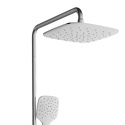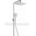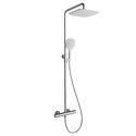 Устройство: душевая система • Смеситель: термостатический • Ручной душ (душевая лейка): настройки 3 шт • Верхний душ (тропический): размер 250 мм • Комплектация: ручной душ, верхний душ, смеситель, стойка, шланг, крепление ручного душа
