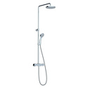 Устройство: душевая система • Смеситель: термостатический • Верхний душ: размер 200 мм, настройки 1 шт • Комплектация: лейка, смеситель, стойка, шланг, крепление лейки