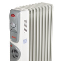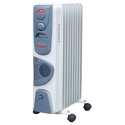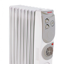 Тип: масляный радиатор • Нагревательный элемент: электрическая спираль • Мощность: 2400 Вт • Напряжение питания: 220 В, 240 В • Размеры (ШxВxГ): 240x630x400 мм • Регулировка мощности: есть • Вентилятор: есть • Количество секций радиатора: 9 • Управление: механическое • Колесики: есть • Ручка: есть • Отделение для хранения кабеля: есть • Вес: 10.1 кг • Цвет: белый, серый