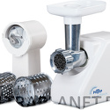 Номинальная мощность: 300 Вт • Производительность: 0.58 кг/мин • Размеры (ШxВxГ): 135x207x258 • Вес: 3.5 кг • Насадки-решетки: Есть • Насадки для шинковки: Есть • Соковыжималка: есть • Резиновые ножки: есть • Лоток для подачи продуктов: есть, пластик • Цвет корпуса: белый • Материал корпуса: пластик • Отделение для хранения кабеля: есть • Максимальная мощность: 1500 Вт