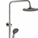 Устройство: душевая система • Смеситель: джойстик • Ручная лейка: размер 100 мм, настройки 3 шт • Верхний душ: размер 200 мм, настройки 1 шт • Комплектация: лейка, смеситель, стойка, шланг, крепление лейки