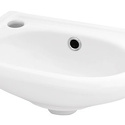 Купили этот умывальничек в туалет. В отличие от других моделей на нем нет углов, что очень хорошо для маленьких помещений. Особо не наплескаешься в нем, но руки помыть можно. Прикупили к нему смеситель с гигиеническим душем, предусмотрели чтоб душ поключался снизу - вообще прелесть. Немного огорчила кривизна задней стенки. А также снизу где присоединяется сифон, тоже неровно, надо очень аккуратно прицеливаться, чуть перекос и течет вода. И само сливное отверстие сверху тоже не очень ровное, но у сифона сверху нержавеечка с дырочками при хорошем вкручивании винта приняла форму раковины.