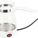электрическая турка • 600 Вт • корпус пластик/стекло • используемый кофе: молотый • цвет белый/прозрачный