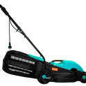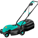 колёсная газонокосилка • электрический двигатель 1800 Вт (2.44 л.с.) • ширина скашивания: 38 см • жесткий травосборник 35 л