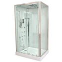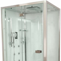 Закрытая кабина, полностенная, правосторонняя, двери раздвижные, материал поддона: акрил, материал стенок: стекло, турецкая баня, тропический душ, вертикальный гидромассаж, габариты (ШхВхД): 90x220x120 см