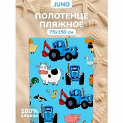 Полотенце пляжное вафельное 75х150 "Непоседа" рис 16439-2 Синий трактор