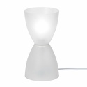 Настольная лампа декоративная стиля модерн для гостиной, кабинета или спальни имеет размеры 120x230 мм. Арматура светильника окрашена в белый цвет. Лампы в комплекте - отсутствуют. В светильнике применяются лампы накаливания или светодиодная LED-лампа. Цвет плафонов - белый, с матовой поверхностью. Материал плафонов - полимер. Класс электробезопасности - II, степень пылевлагозащиты (IP) - 20. Максимальная мощность лампы (Вт) - 40. Светильник размещается на столе.
