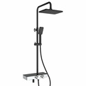 Устройство: душевая система • Смеситель: термостатический • Ручной душ (душевая лейка): размер 86 мм, настройки 3 шт • Верхний душ (тропический): размер 260 мм, настройки 1 шт • Комплектация: ручной душ, верхний душ, смеситель, стойка, шланг, крепление ручного душа, полка