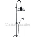 Устройство: душевая система • Смеситель: двухвентильный • Ручной душ (душевая лейка): размер 75 мм, настройки 1 шт • Верхний душ (тропический): размер 200 мм, настройки 1 шт • Комплектация: ручной душ, верхний душ, смеситель, стойка, шланг, крепление ручного душа • Покрытие: под золото