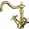 Назначение: кухонный • Конструкция: двухрычажный • Монтаж: горизонтальный • Материал: покрытие - хром • Подводка: гибкая • Монтажные отверстия: 1 отверстие • Форма излива: традиционная • Душевая лейка в комплекте: нет