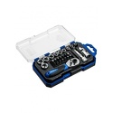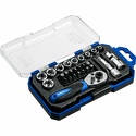 Набор: бит 13 шт, торцевых головок 10 шт • Биты: SL, PH, Torx, Hex • Торцевые головки: 6-гранные • Посадочный квадрат: 1/4" • Дополнительно: удлинитель, карданный шарнир